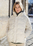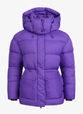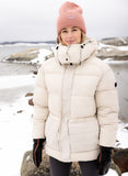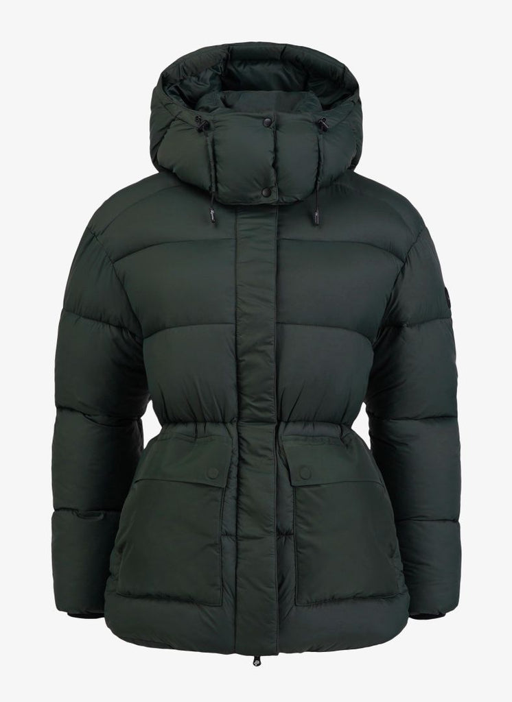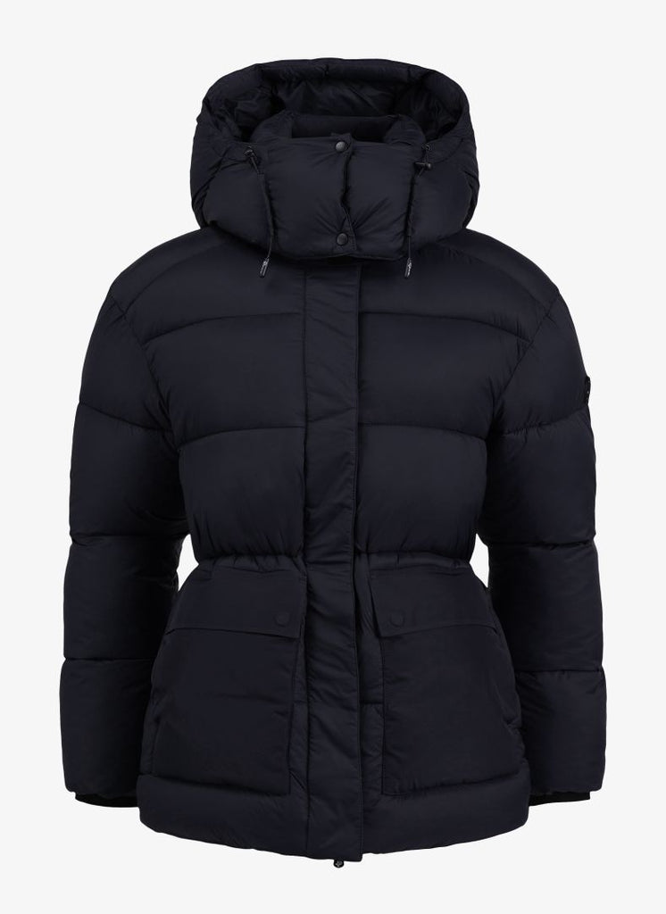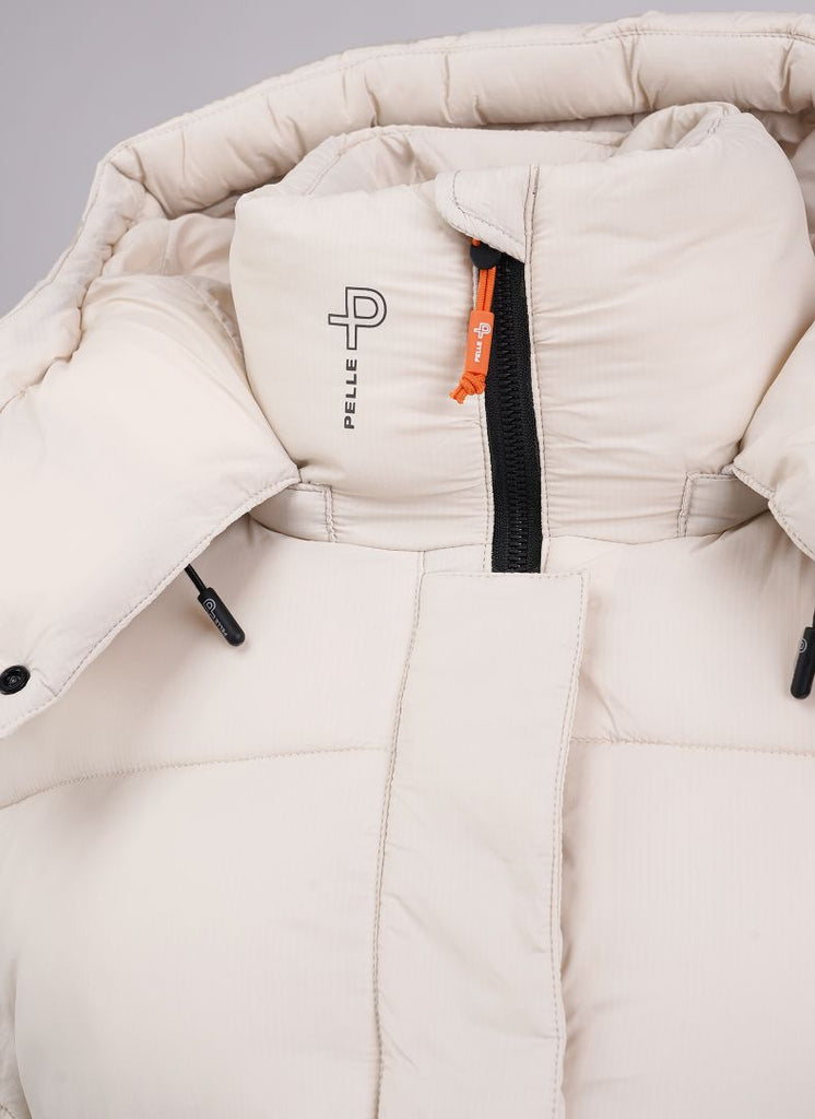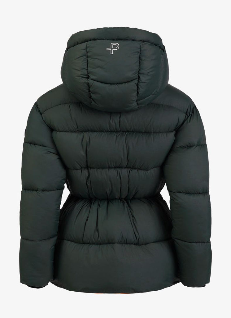 Diese Jacke besteht aus recyceltem Polyester mit einer Ballfaser-Wattierung aus 30 % Sorona® und 70 % recyceltem Polyester aus PET-Flaschen. Der Außenstoff ist wasserabweisend mit einer PFC-freien DWR-Behandlung. Die Jacke verfügt über einen YKK VISLON® Soft Touch 2-Wege-Reißverschluss in mattem Schwarz in der vorderen Mitte, zwei Vordertaschen mit unsichtbaren Magnetknöpfen und zwei Seitentaschen mit Fleecefutter. Innen hat sie zwei Netztaschen und eine Brusttasche mit Reißverschluss. Verstellbare Kordeln an der Taille und am unteren Saum sowie elastische Bündchen an den Ärmeln sorgen für eine flexible Passform. Die Jacke hat außerdem eine abnehmbare Kapuze, reflektierende P-Logos an der Kapuze, am Kragen und in der Rückenmitte sowie ein Gummi-Metall-Abzeichen am Ärmel. Lockere Passform.