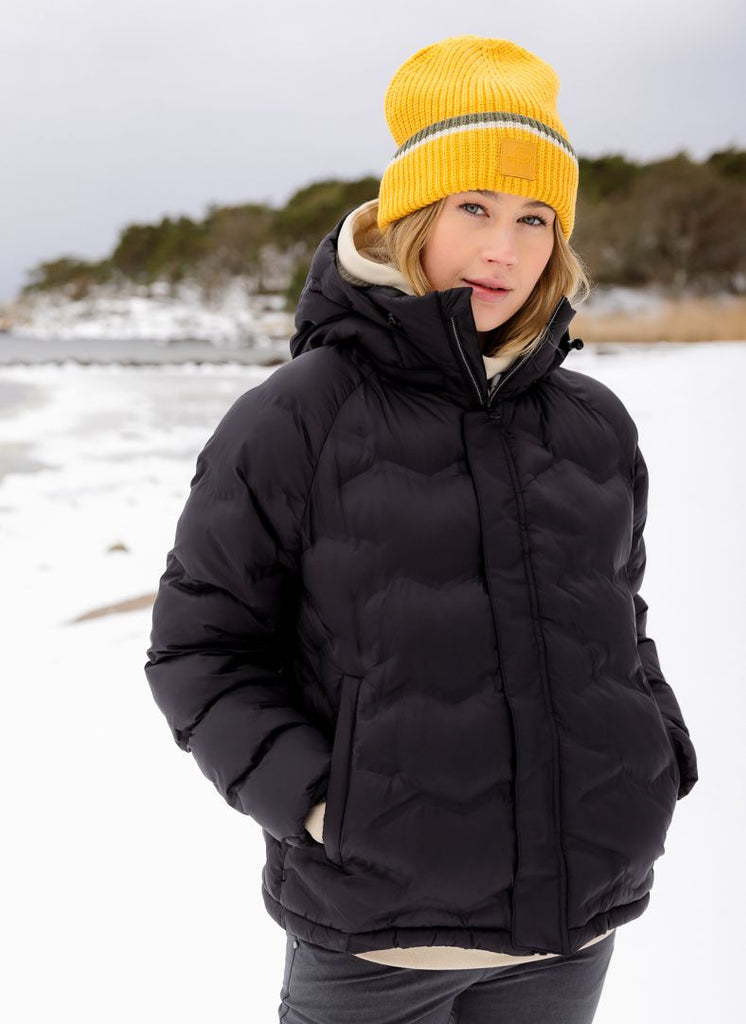 Winterjacke aus winddichtem Außenmaterial mit matter Oberfläche. Die Jacke hat verschweißte Fächer zur gleichmäßigen Verteilung der Wattierung aus 100 % recycelten PET-Flaschen. Die Jacke hat ein kontrastfarbenes Futter.